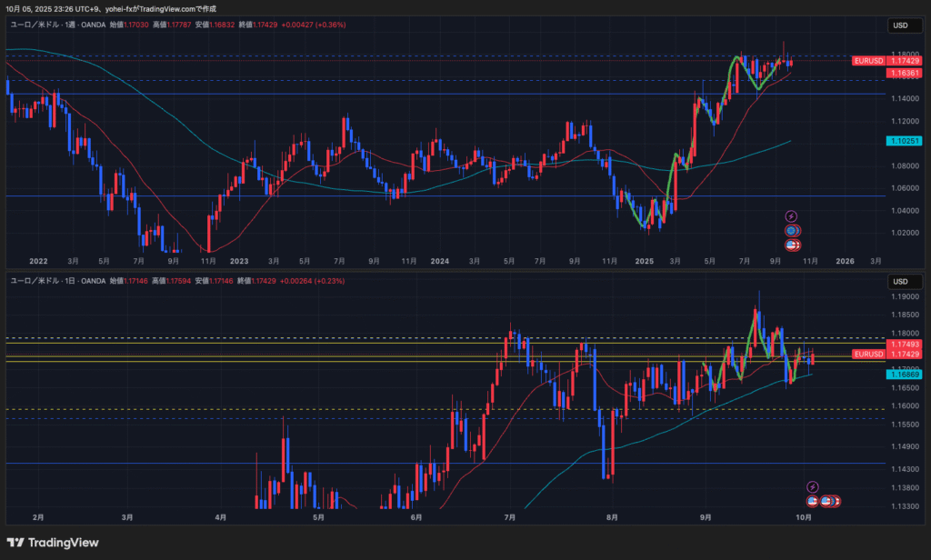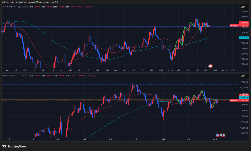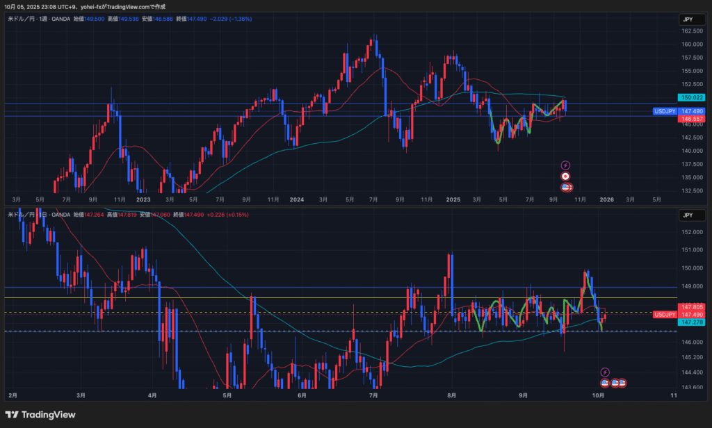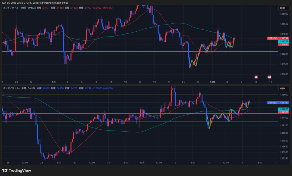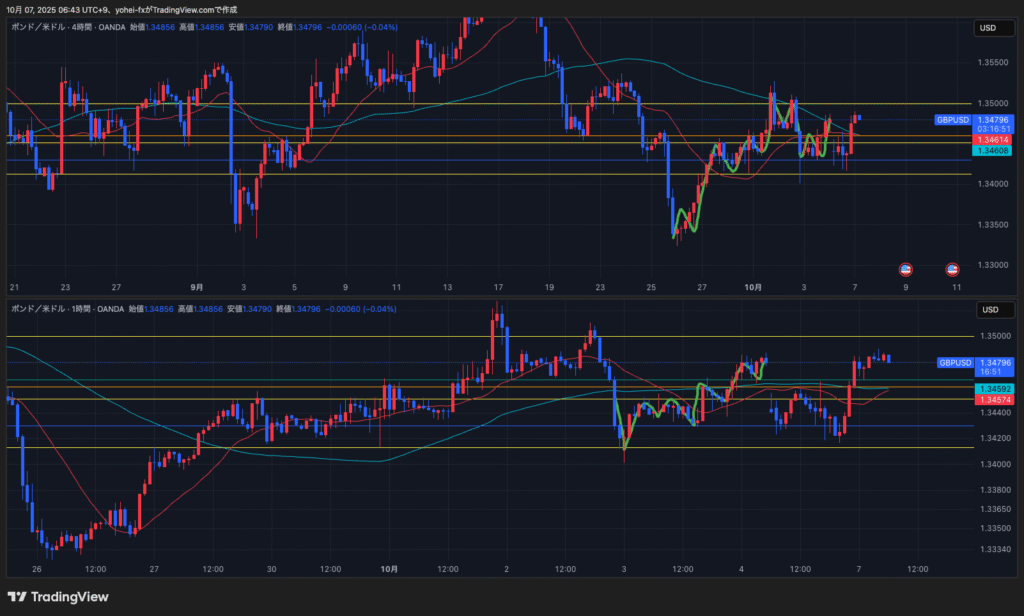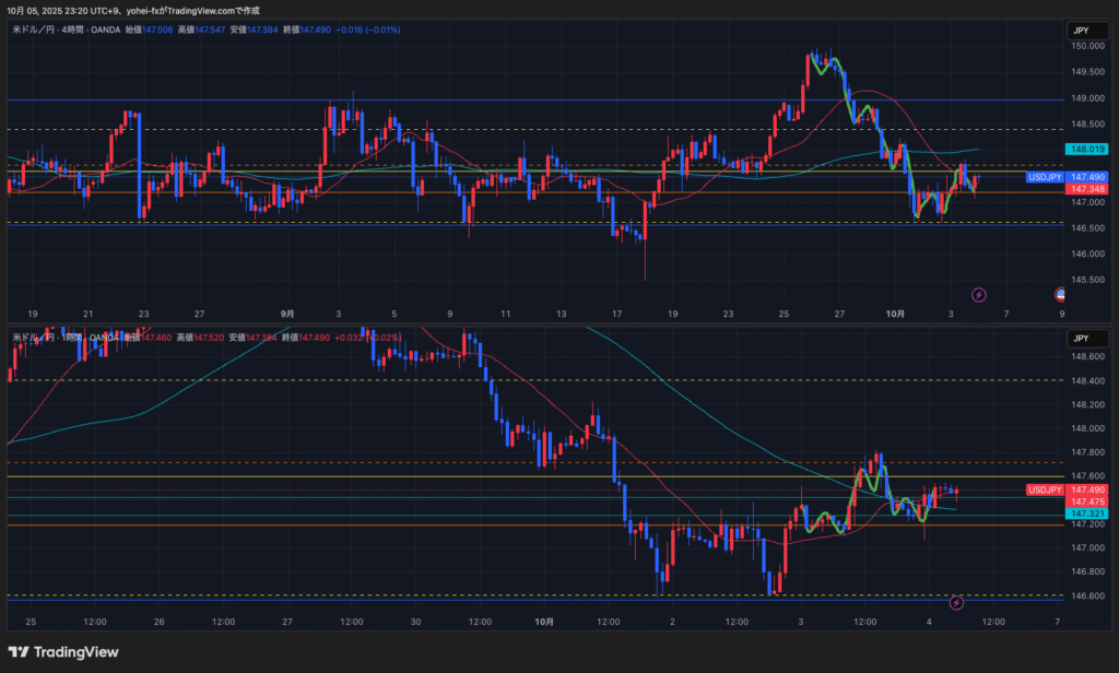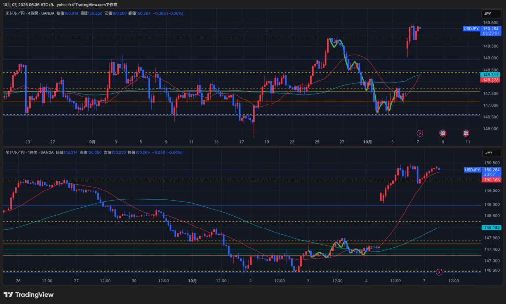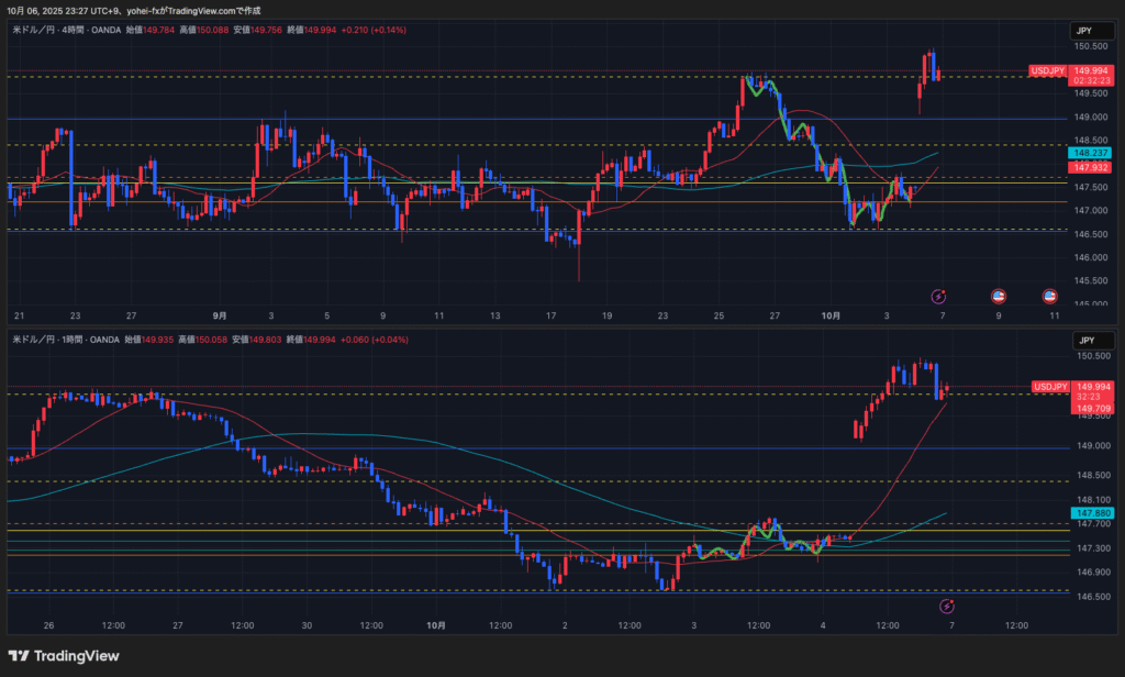 4時間、戻り売りも想定されるが、日足が全戻しのため、日足の押し目買い勢力もいる可能性がある