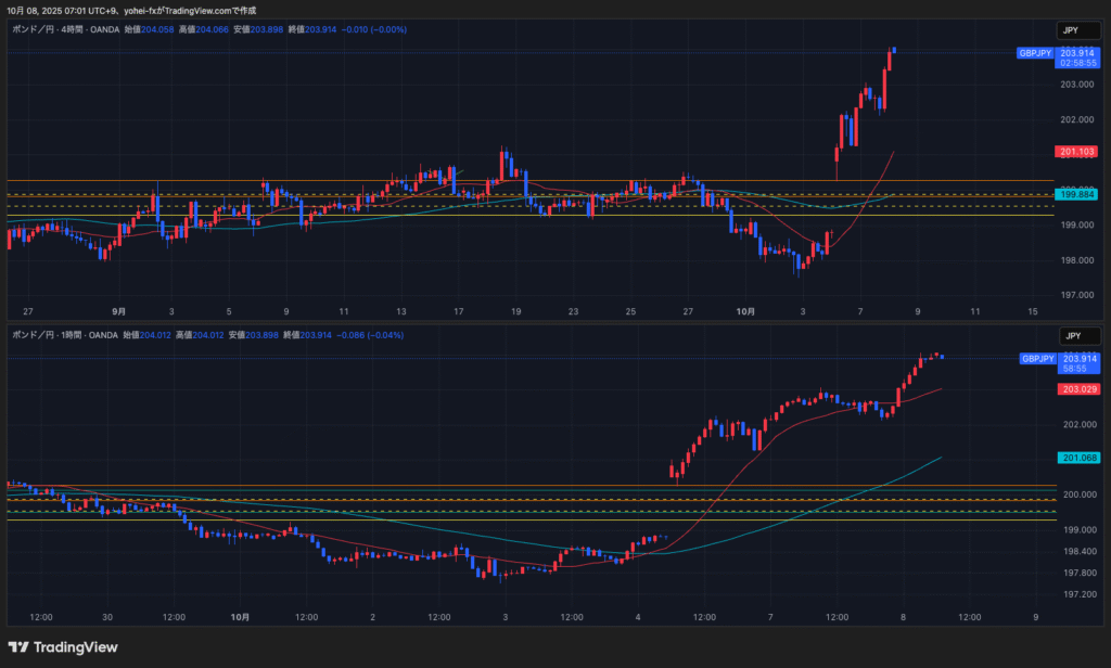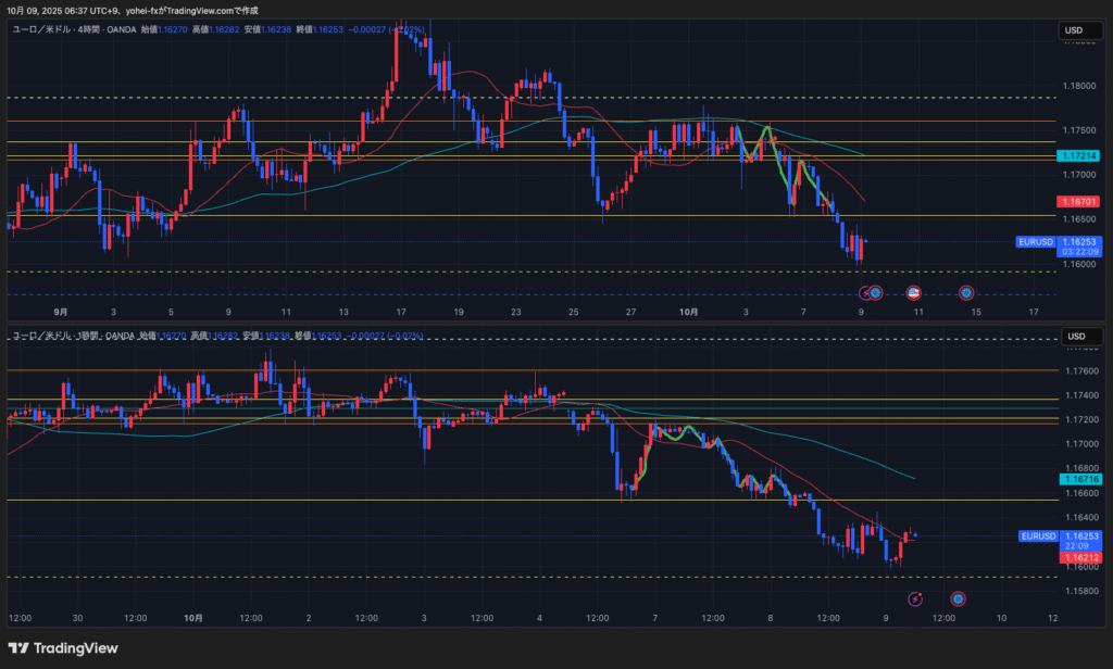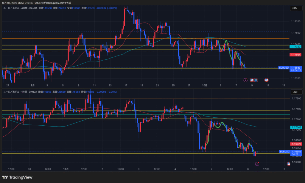 1時間足のダウカウントがほぼまっすぐで、4時間が見えている